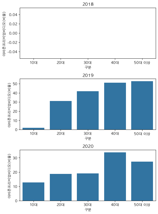 특정 국가에서 OTT서비스 이용이 특정 연령 그룹에 집중되어 있을 것이다.- 국가 간에 OTT서비스 이용 비율에 큰 차이가 있을 것이다.