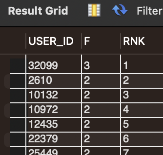 10분위 분석을 진행하려면 먼저 각 구매자의 분위 수를 구해야 한다. 우리는 고객들의 주문 건수를 기준으로 분위 수를 나눈다.