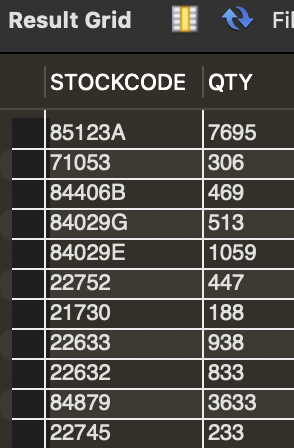 SELECT STOCKCODE