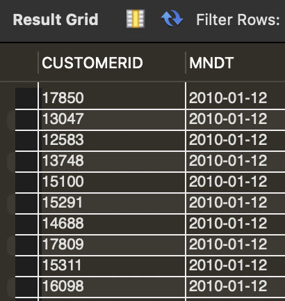 MIN(INVOICEDATE) MNDT