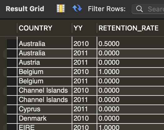 먼저 최초 구매일은 SUBSTR() 함수를 이용해 '연도-월'까지만 데이터를 가져온다. 이후 최초 구매일과 각 구매일 사이의 간격은 TIMESTAMPDIFF() 함수를 이용할 수 있다.