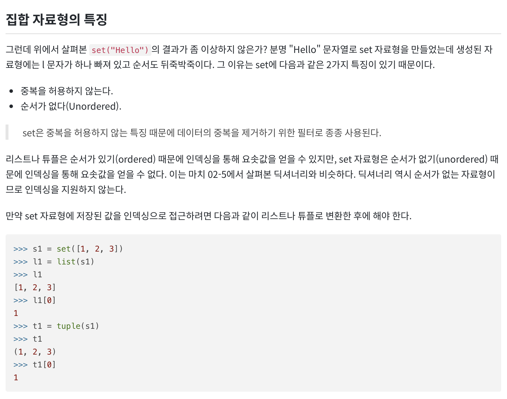 `[동영상 강의]` : [점프 투 파이썬 02-6 집합 자료형](https://www.youtube.com/watch?v=Gv8wj2mHD8A&list=PLGSQkvB9T6rvn…